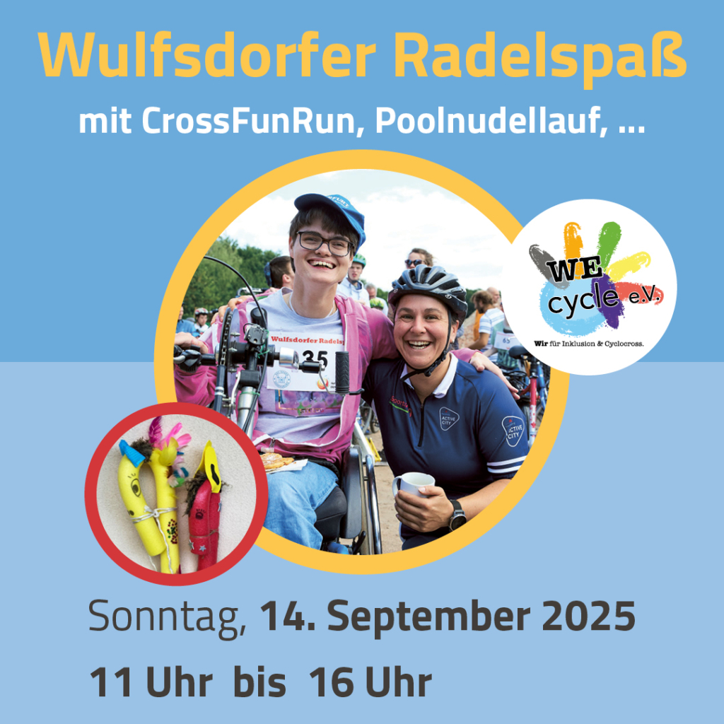 Assistenzbedarf gemeinsam als Team auf einem ca. 2 km langen Rundkurs fernab vom Straßenverkehr. Die Strecke kann mehrere Male gefahren werden. Im Mittelpunkt steht das Miteinander, nicht die Schelligkeit. Mit dabei sind Radkuriositäten wie Trimobile,